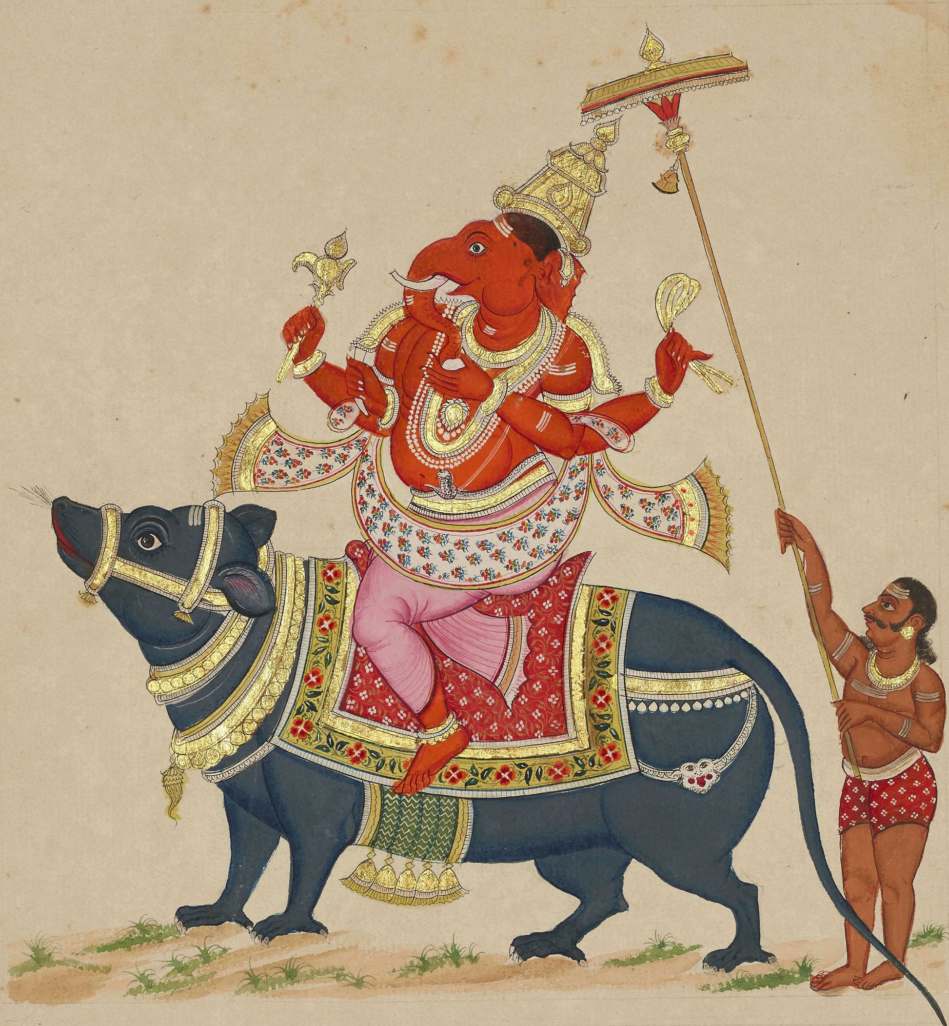 Thanjavur Ganesha on Mushak | Indian Miniature Art Print | Red Ganesha Wall Art