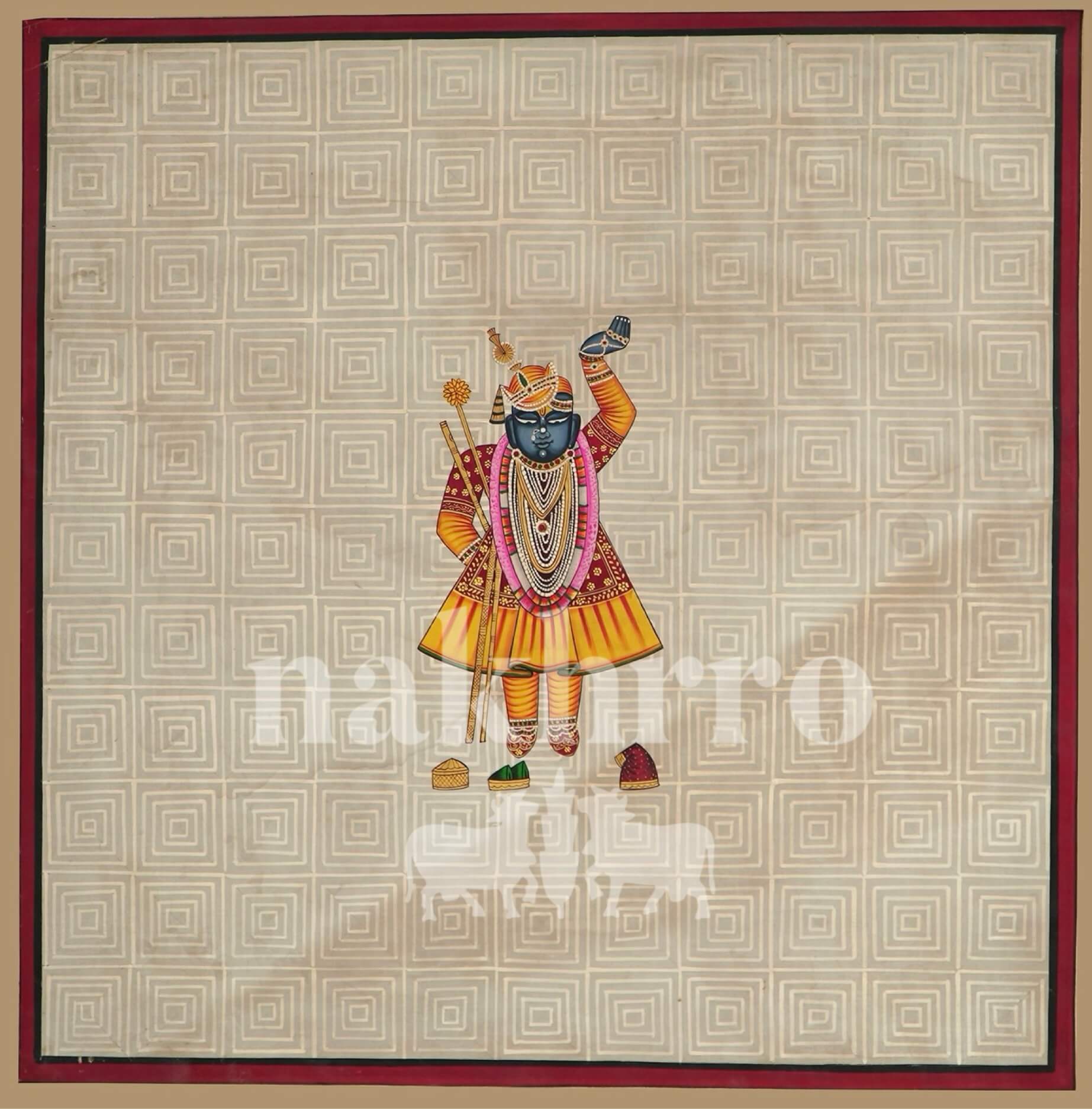 Hand-Painted Shrinathji Pichwai on Geometric Beige Background